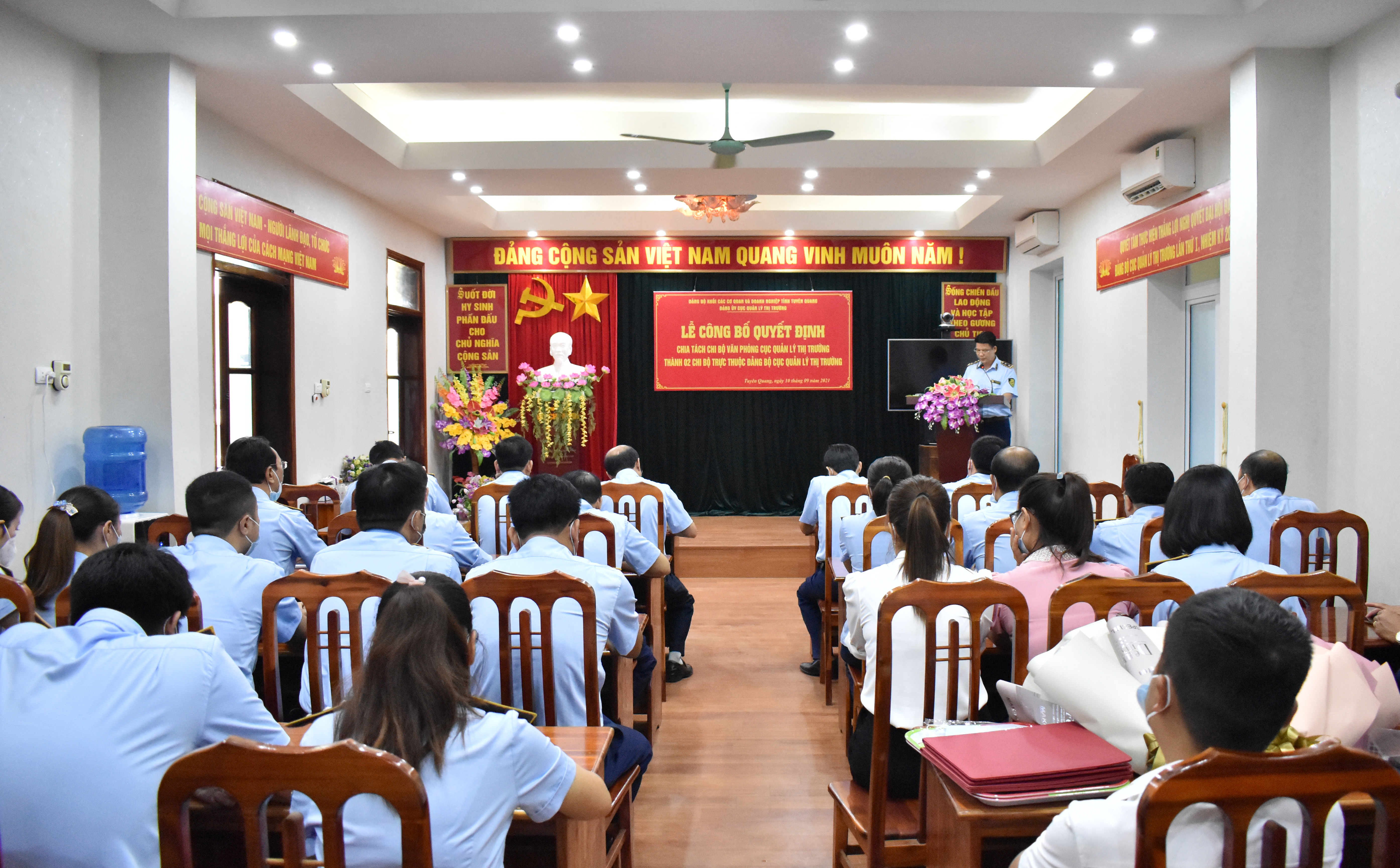 Buổi lễ được tiến hành long trọng, theo đúng nghi thức, điều lệ Đảng. Thay mặt cho Đảng ủy Cục QLTT, đồng chí Đào Lương Nhân – Phó Bí thư Đảng ủy công bố Quyết định chia tách chi bộ và chỉ định các chức vụ Bí thư, Phó Bí thư và Chi ủy viên.