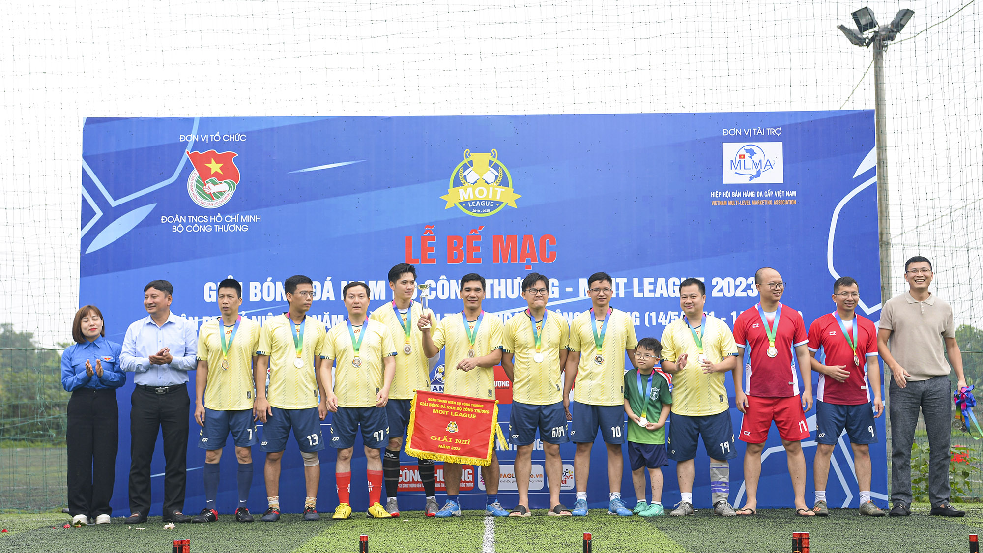 Ban Tổ chức trao giải nhì Giải bóng đá MOIT League 2023 cho Đội bóng Liên quân Ủy ban Cạnh tranh Quốc gia - Cục Phòng vệ thương mại (VCC-Trav)