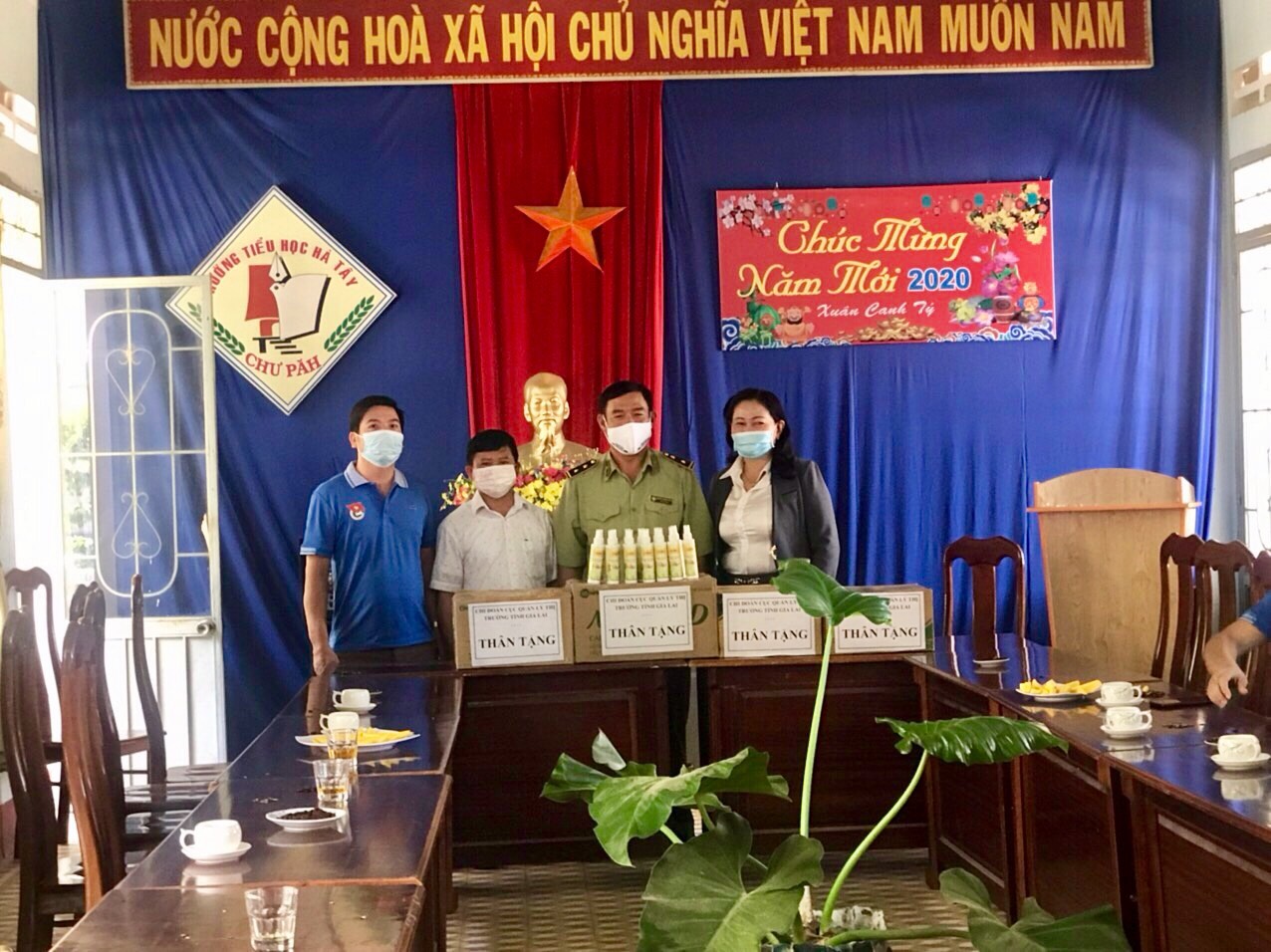 - Nhằm đồng hành cùng các em học sinh dân tộc thiểu số tại điểm trường vùng sâu, vùng xa và học sinh có hoàn cảnh khó khăn trong mùa dịch bệnh Covid-19 khi tiếp tục chương trình học, chi đoàn đã tặng 300 chai nước rửa tay khô (loại 150ml) cho các em học sinh đồng bào dân tộc thiểu số tại Trường Tiểu học xã Hà Tây. Địa chỉ: Làng kon hơ ngleh, xã Hà Tây, huyện Chư Păh, tỉnh Gia Lai. Tổng chi phí quà tặng: 10.500.000 đồng.