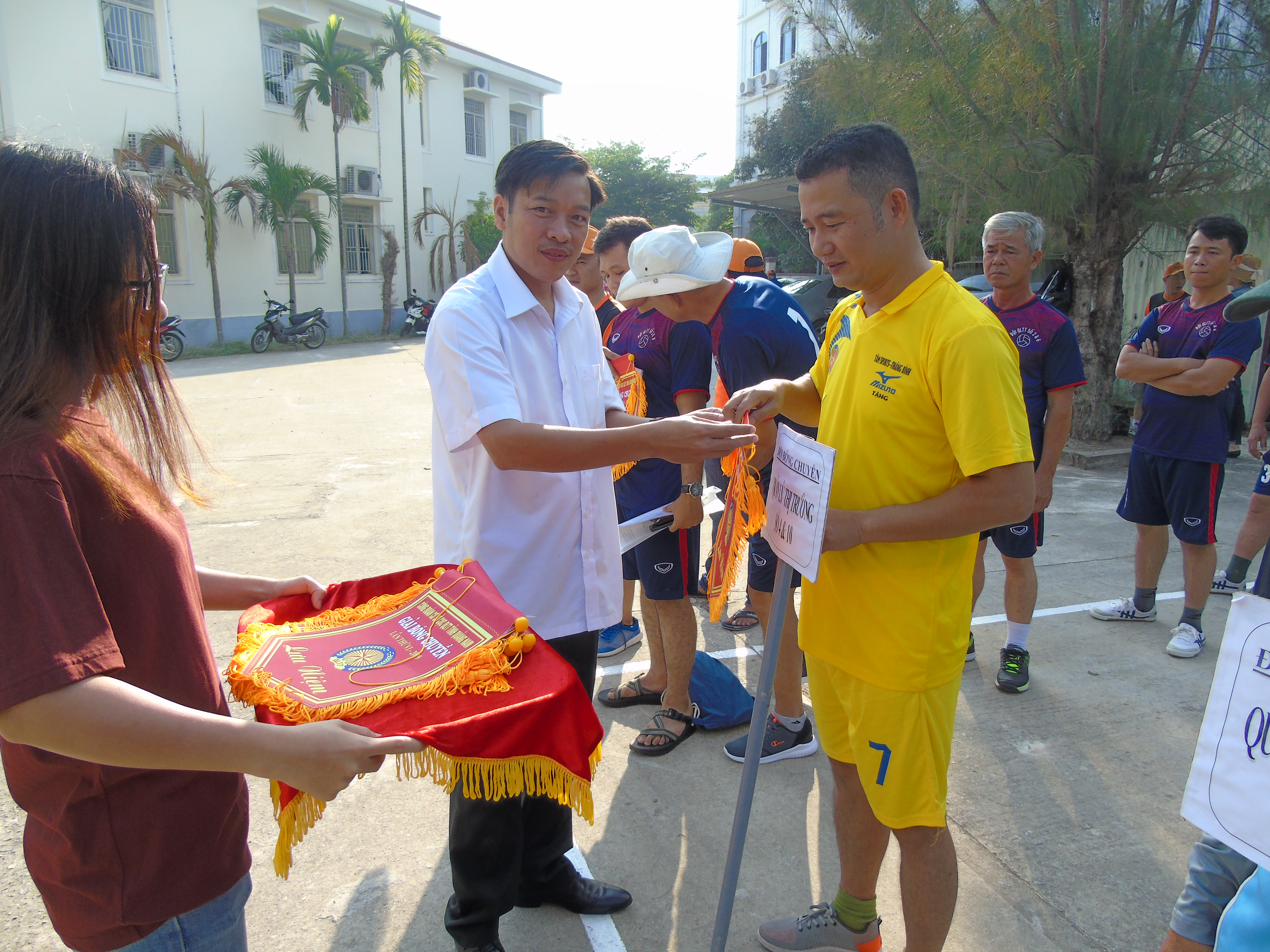 Đ/c Trần Quốc Bảo, Chủ tịch Công đoàn viên chức tỉnh Quảng Nam tặng hoa, cờ lưu niệm cho các Đội tham dự giải