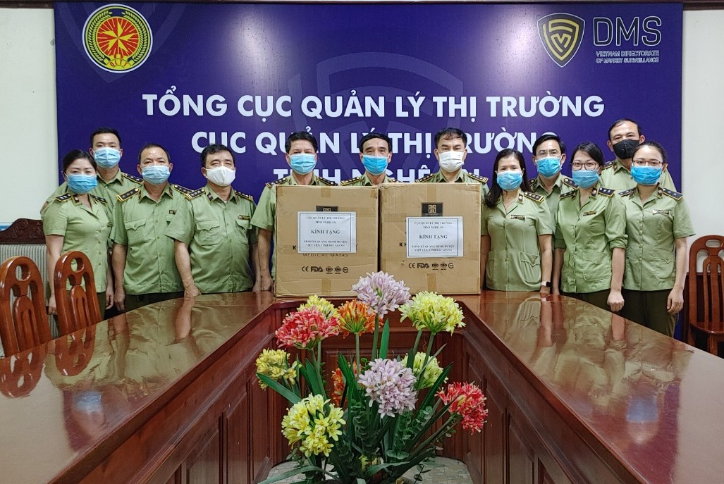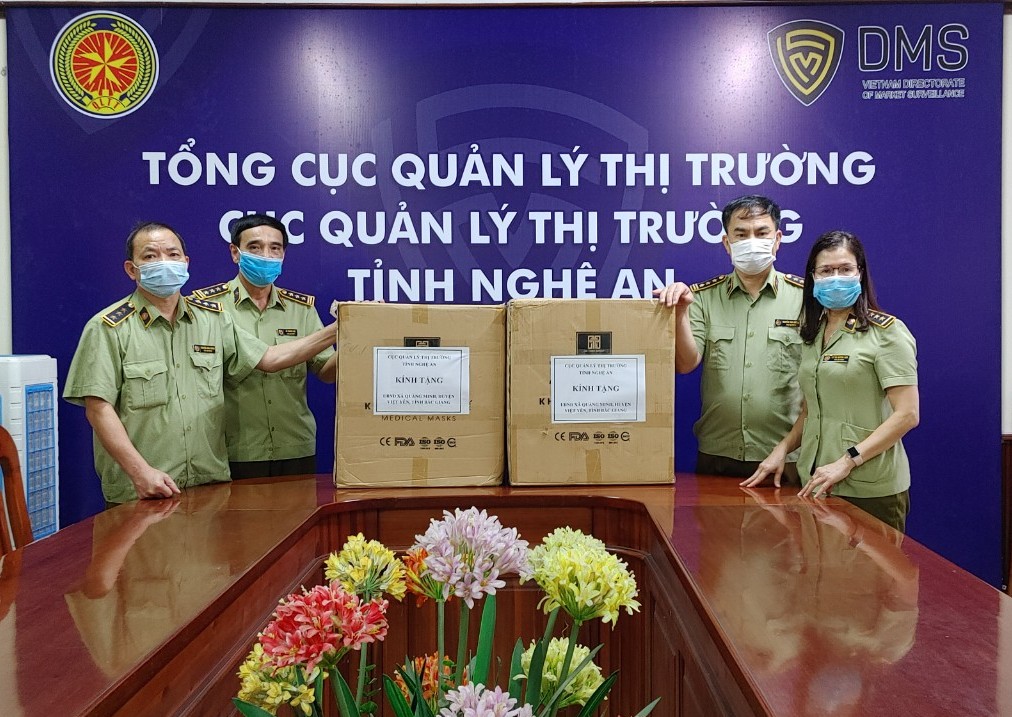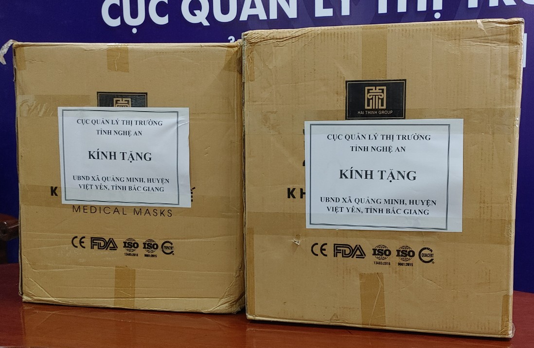 Trước diễn biến phức tạp của dịch Covid - 19, sáng ngày 19/5/2021, Cục Quản lý thị trường tỉnh Nghệ An, Đội QLTT số 3 đã tiến hành trao tặng 5.000 khẩu trang cho UBND xã Quảng Minh, huyện Việt Yên, tỉnh Bắc Giang để phục vụ công tác phòng chống dịch bệnh Covid-19.
