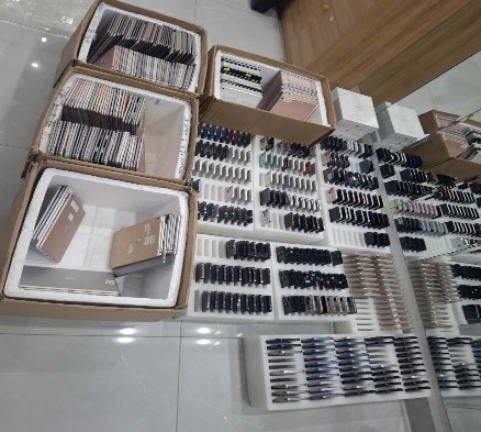 Quá trình kiểm tra và khám, lực lượng chức năng đã phát hiện hơn 1.000 sản phẩm là điện thoại và máy tính bảng Ipad đã qua sử dụng gồm: 416 cái điện thoại di động Iphone các loại, 687 cái máy tính bảng Ipad các loại. Toàn bộ số hàng hóa này chủ các Hộ kinh doanh nói trên không xuất trình được hóa đơn chứng từ cùng giấy tờ có liên quan.